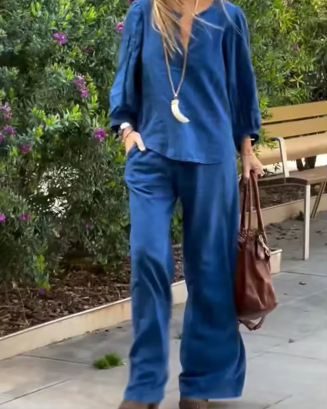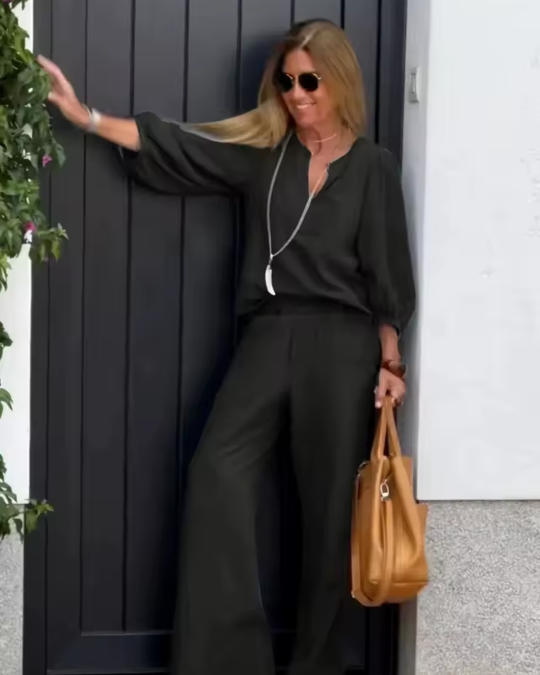 As peças são fluidas e elegantes, permitindo compor outros looks combinando a calça ou camisa com outras peças.